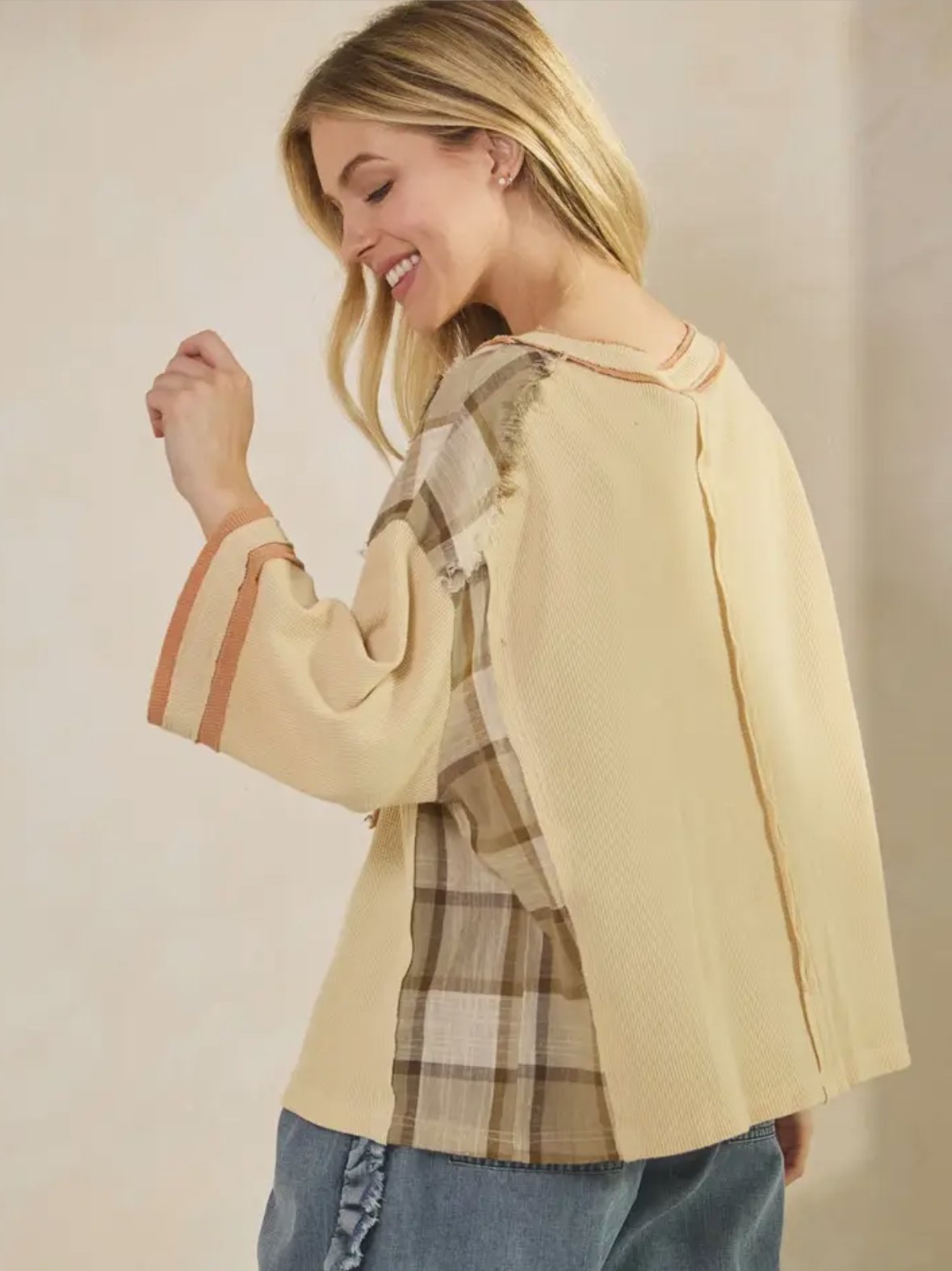 This plaid textured seersucker oversized button-up shirt is lightweight, breathable, and made for easy everyday styling. Designed with a roomy, oversized fit and functional front pocket, it gives that effortlessly undone look while still feeling put together.